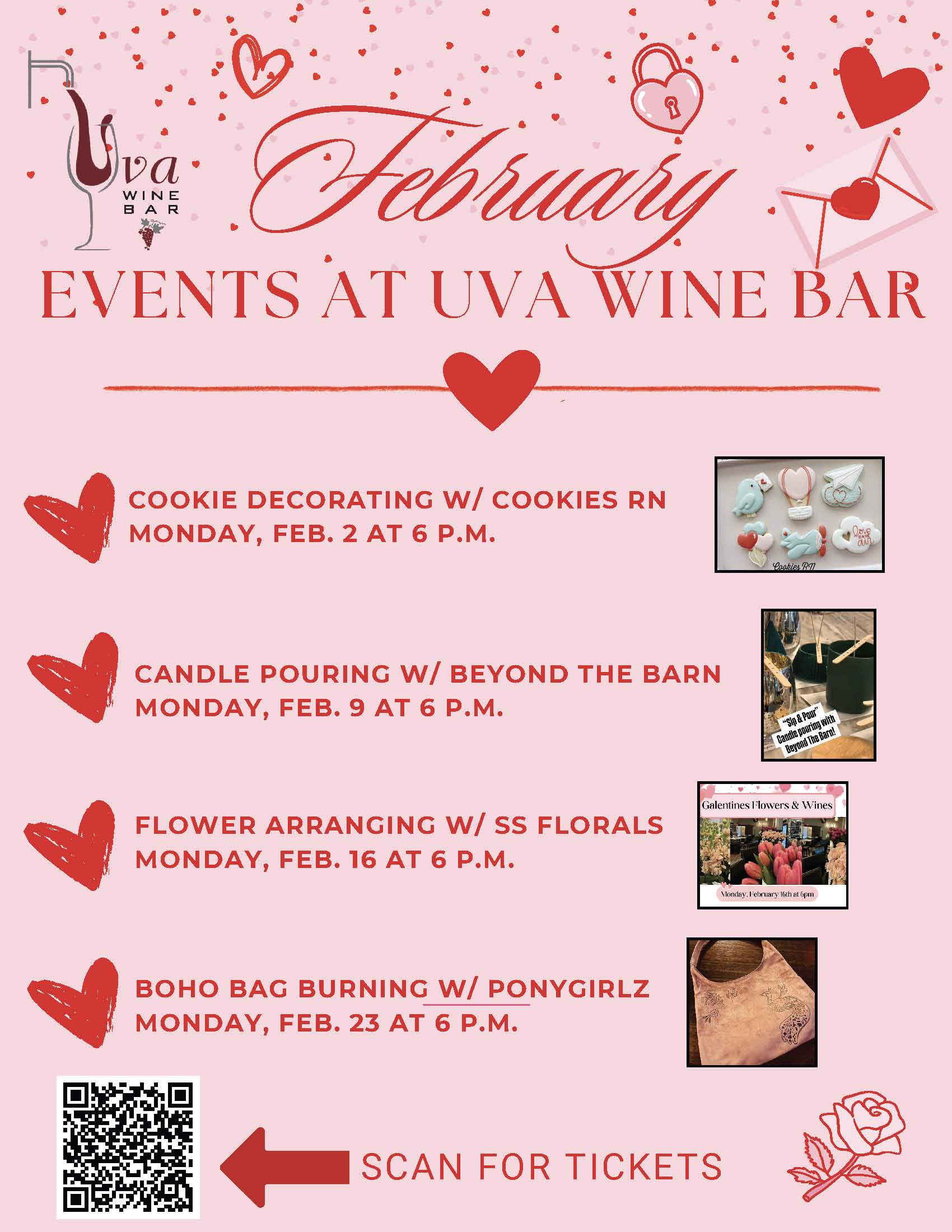 Uva is the go-to place for crafters and makers! We work with several local artists to offer weekly workshops to make beautiful crafts, anging fom flower aranging, seasonal gift items, jewelry, candle-making, etc.